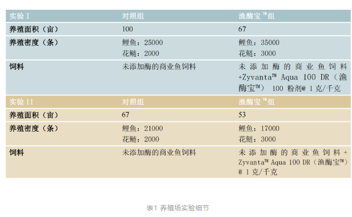 在现场进行了两项养殖实验,评估Zyvanta™ Aqua 100 DR(渔酶宝™)对鲤鱼和花鲢生长性能的提升。