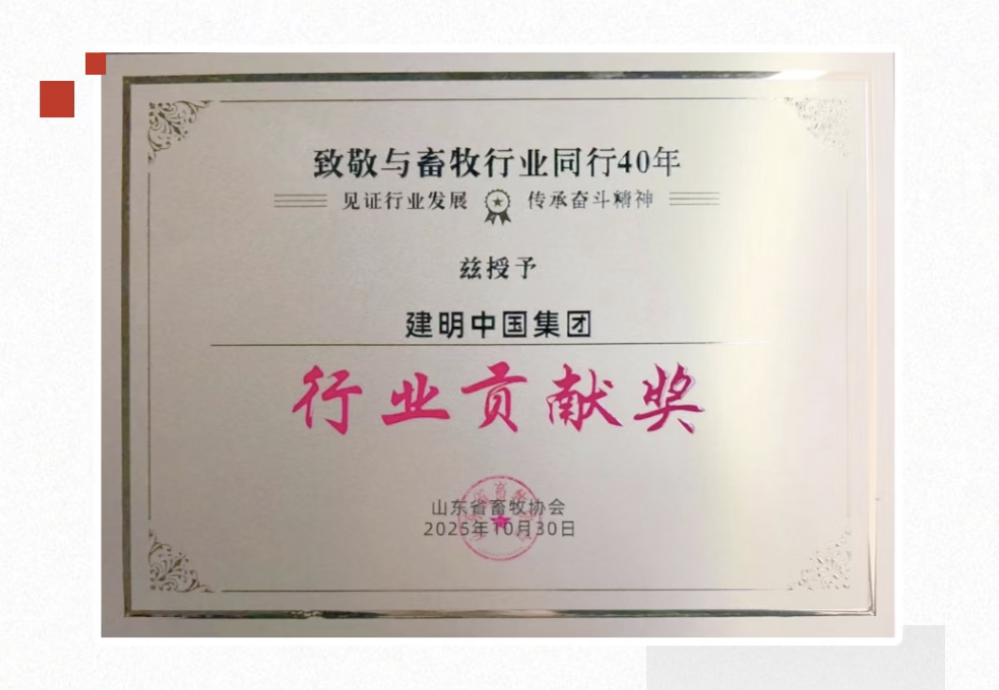 建明中国集团荣获山东省畜牧协会“行业贡献奖”