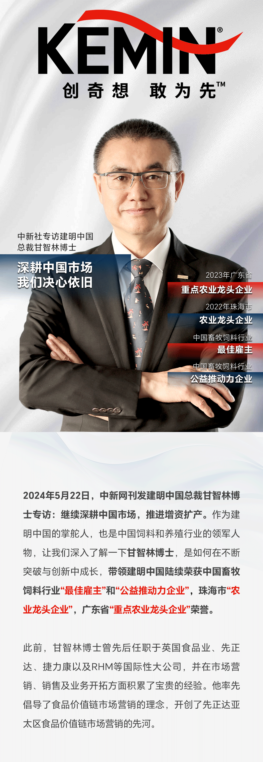官宣!中新网专访建明中国总裁甘智林博士:深耕中国市场 我们决心依旧